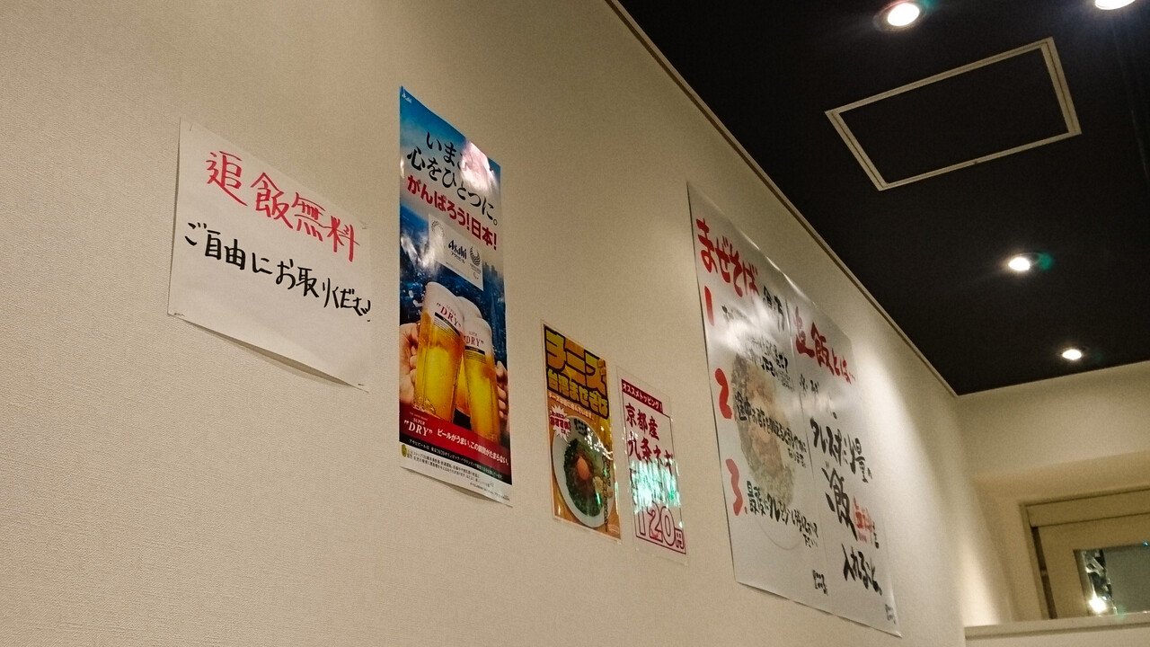 券売機に「ライス」のボタンがあるくらいだから、あくまでも追飯としてのライスが無料なんだろうけど、その線引きがいまひとつ不明確だな。どうせなら、ライス無料!おかわり自由!にしてくれりゃイイのに。