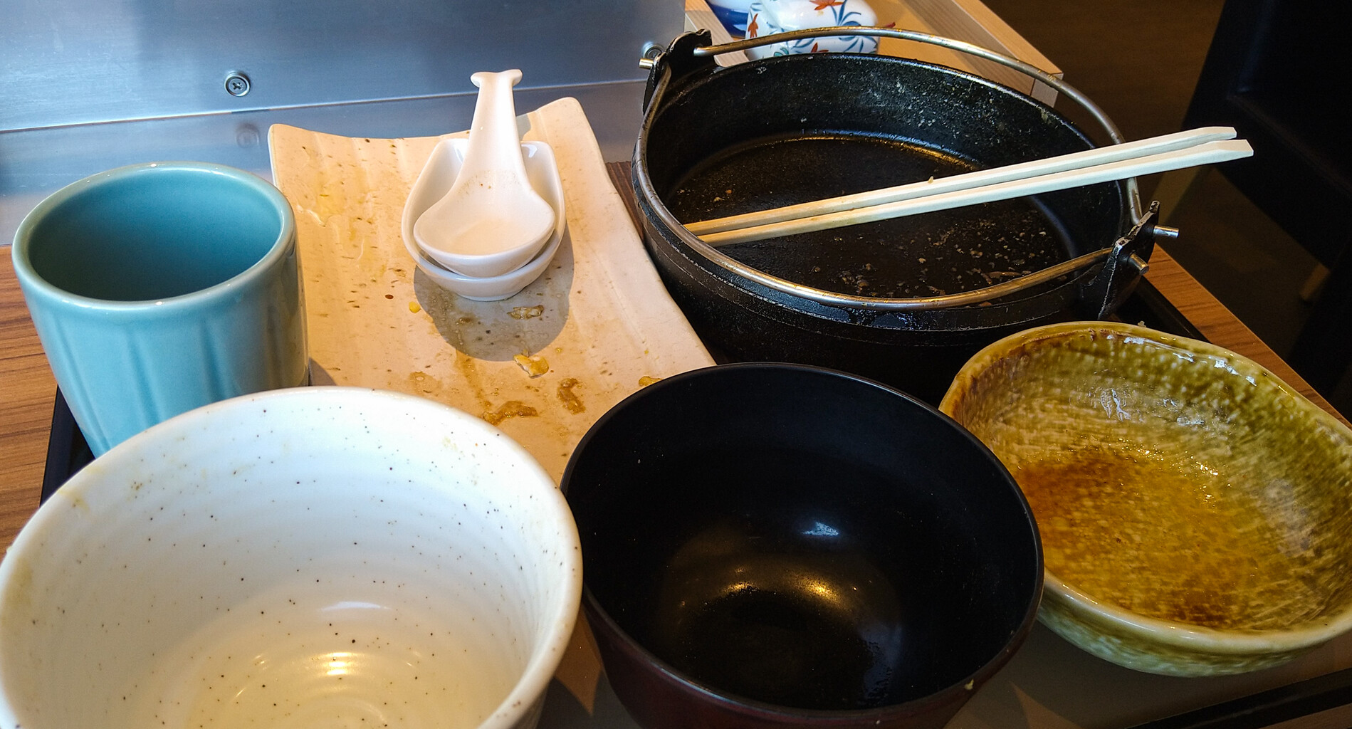 火からおろしての提供なんだけど、鉄鍋だから終始アツアツで食べられるのかな?試しに鉄鍋触ってみたら・・・ギャッ!アッツッッ🔥