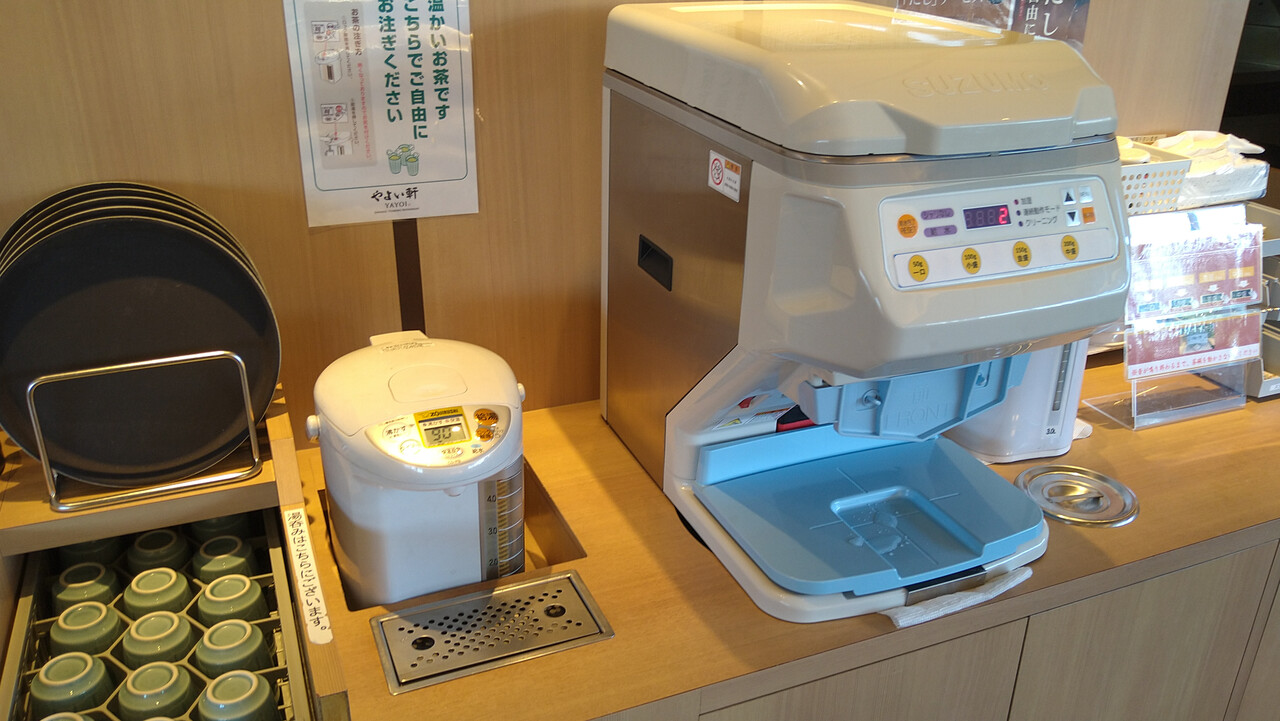 水・お茶・おかわりごはん・出汁、のセルフコーナー。