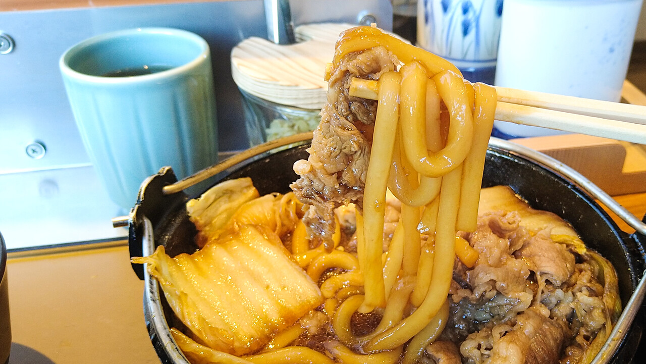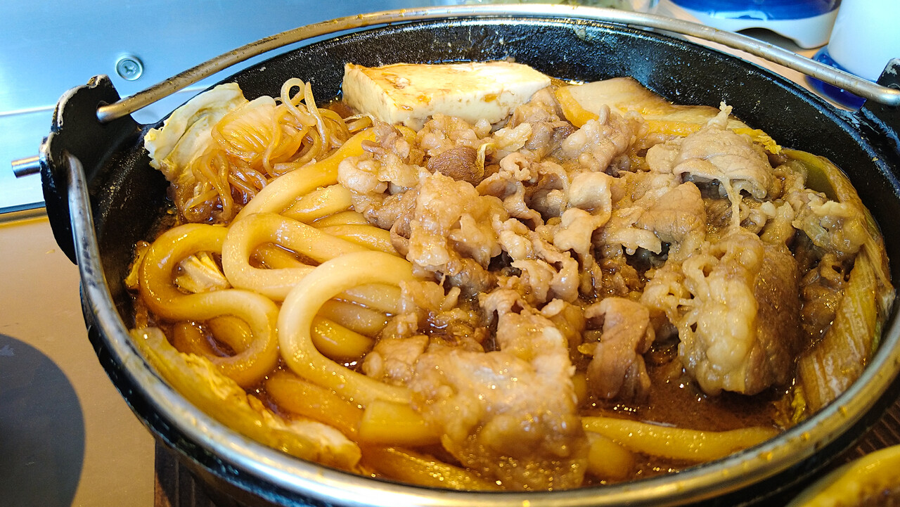 具材は、牛肉・しらたき・白菜・ネギ・豆腐・うどん、って感じでしょうか。肉増(2倍)にしているから、しっかりしたボリューム感があります。