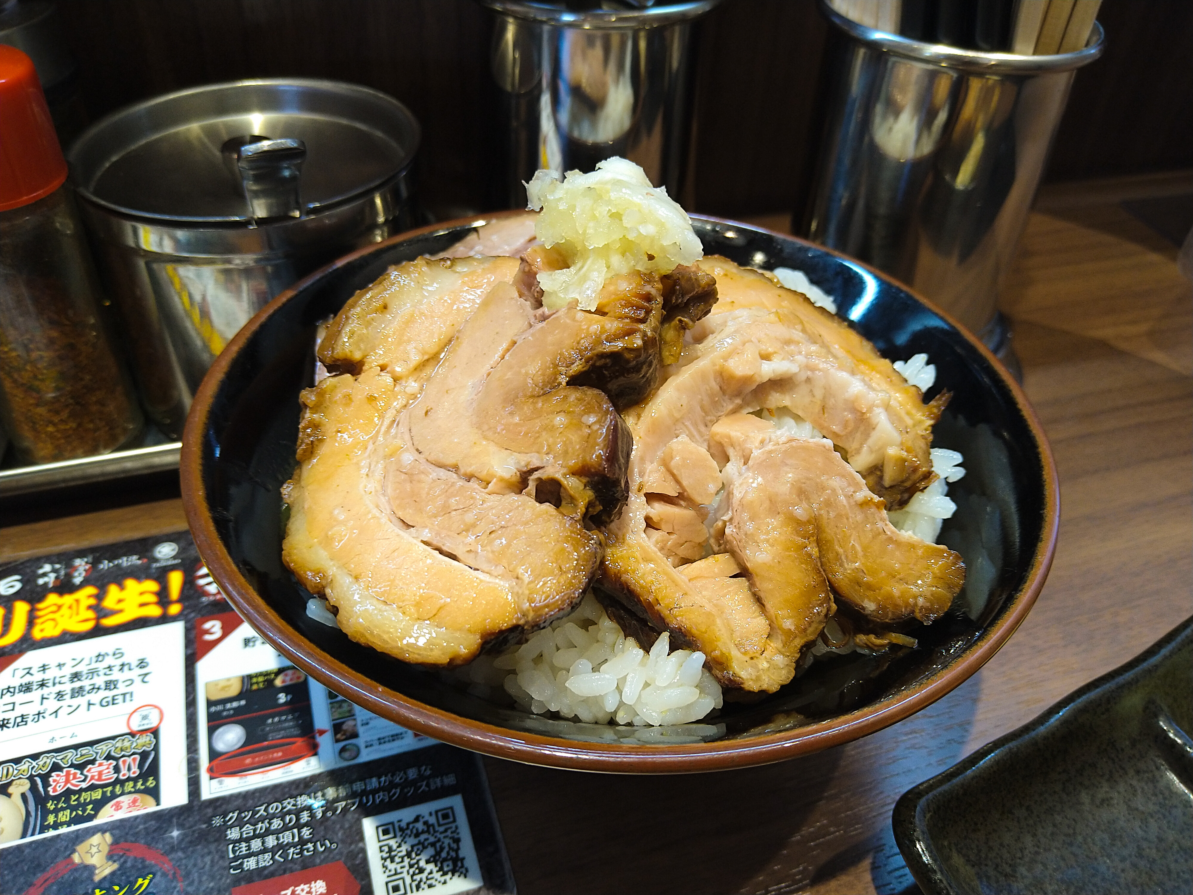 この店には「ミニ炙り叉焼飯330円(セットなら300円)」というメニューがあるが、ラーメンのとろっとろなバラチャをライスに乗せた方が断然旨かった。