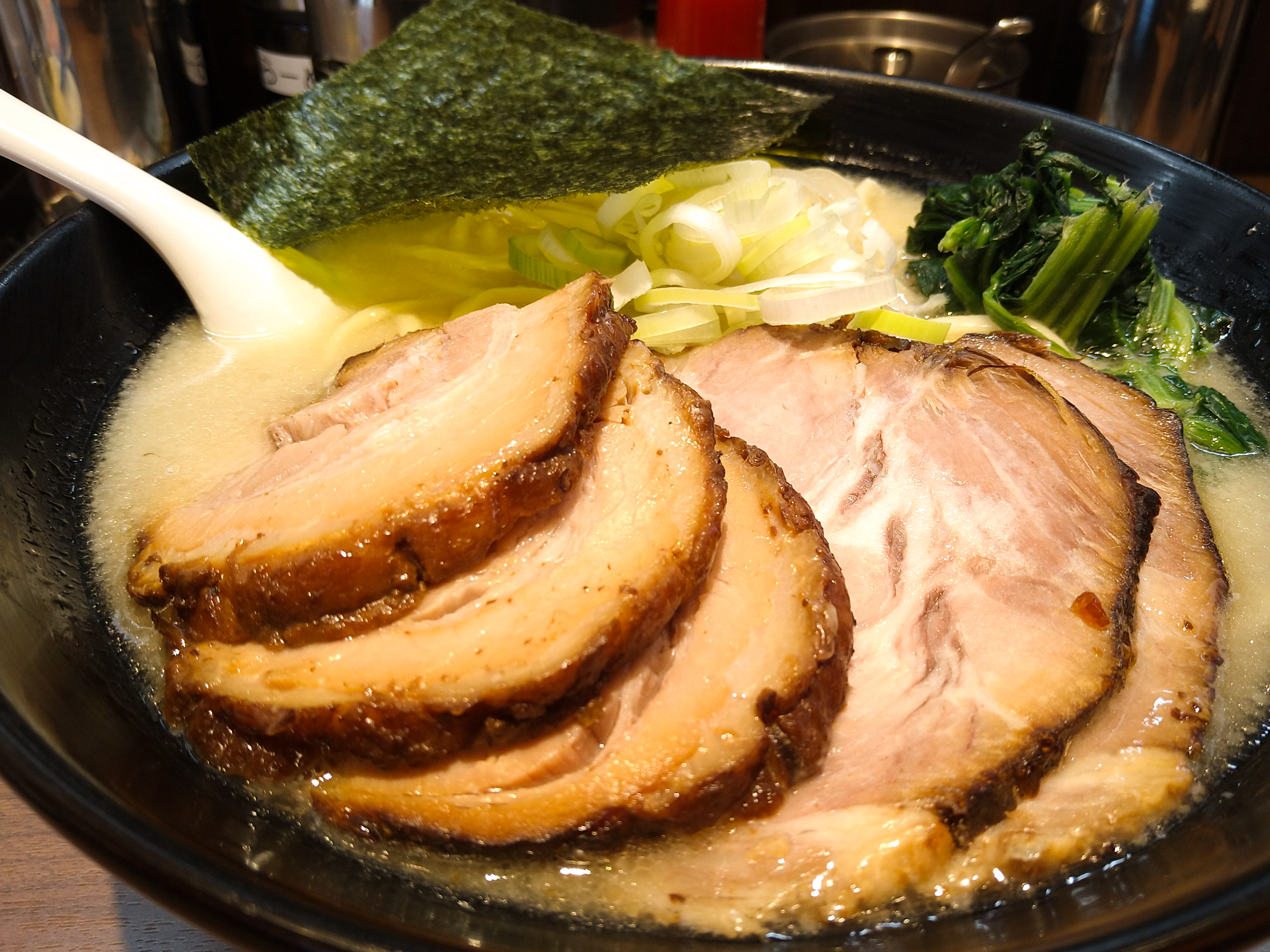 トッピングは、チャーシュー・ほうれん草・ネギ・海苔。