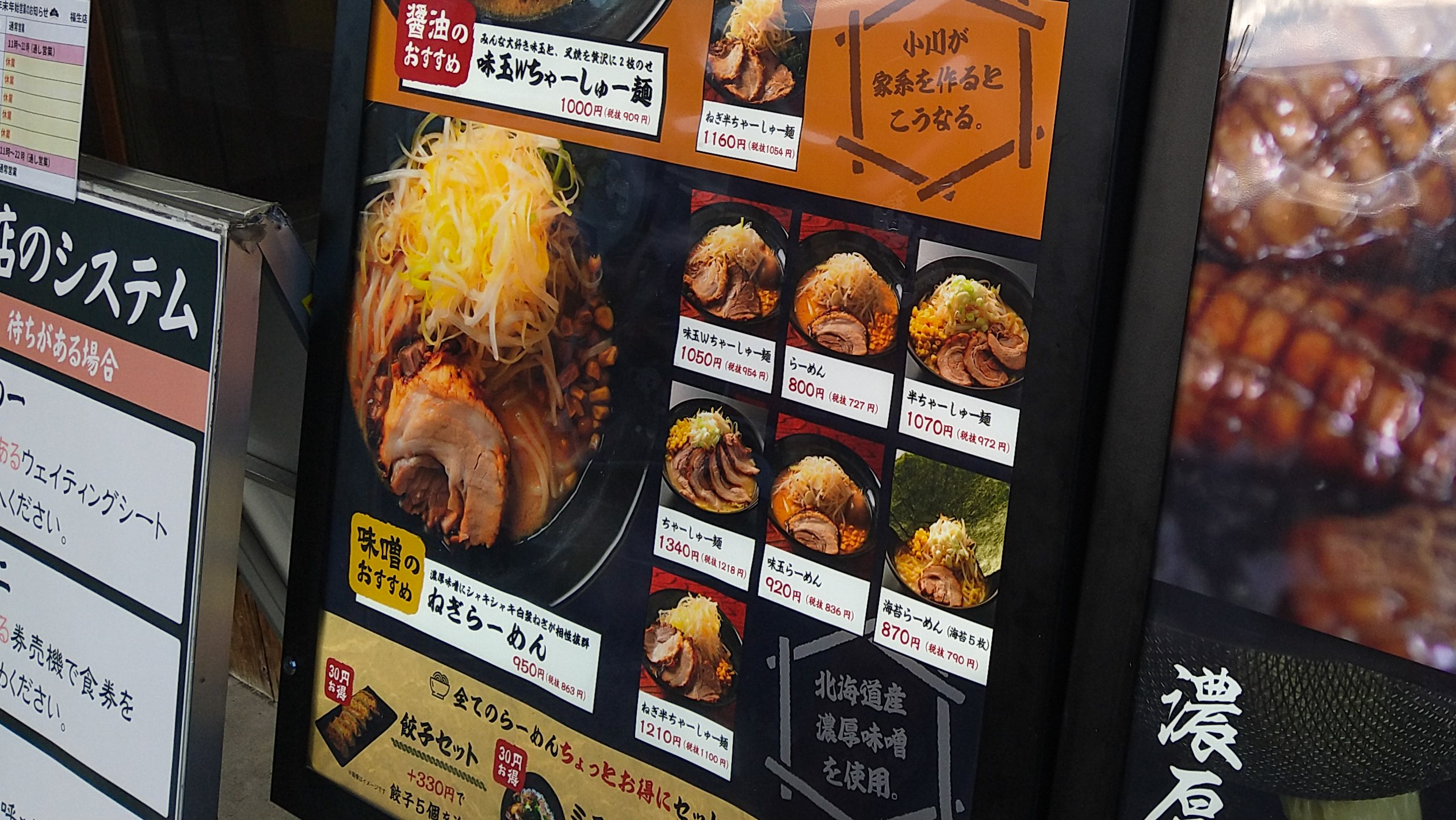 いつ『新登場』したのか知らないけど、青いインクの擦れっぷりから思うにそこそこ経ってんのと違うか!? 新登場っ言うわりには、店側の推しがコレだけだったってことも気になる。文言もグイグイ攻めてくる感じがしないし、ただ単に謙虚なんだか、醤油や味噌より自信がないのか、これを見て素直にワオ!!ってなれない自分がいる。まあ、いずれにしても一度は食べてみないとね。
