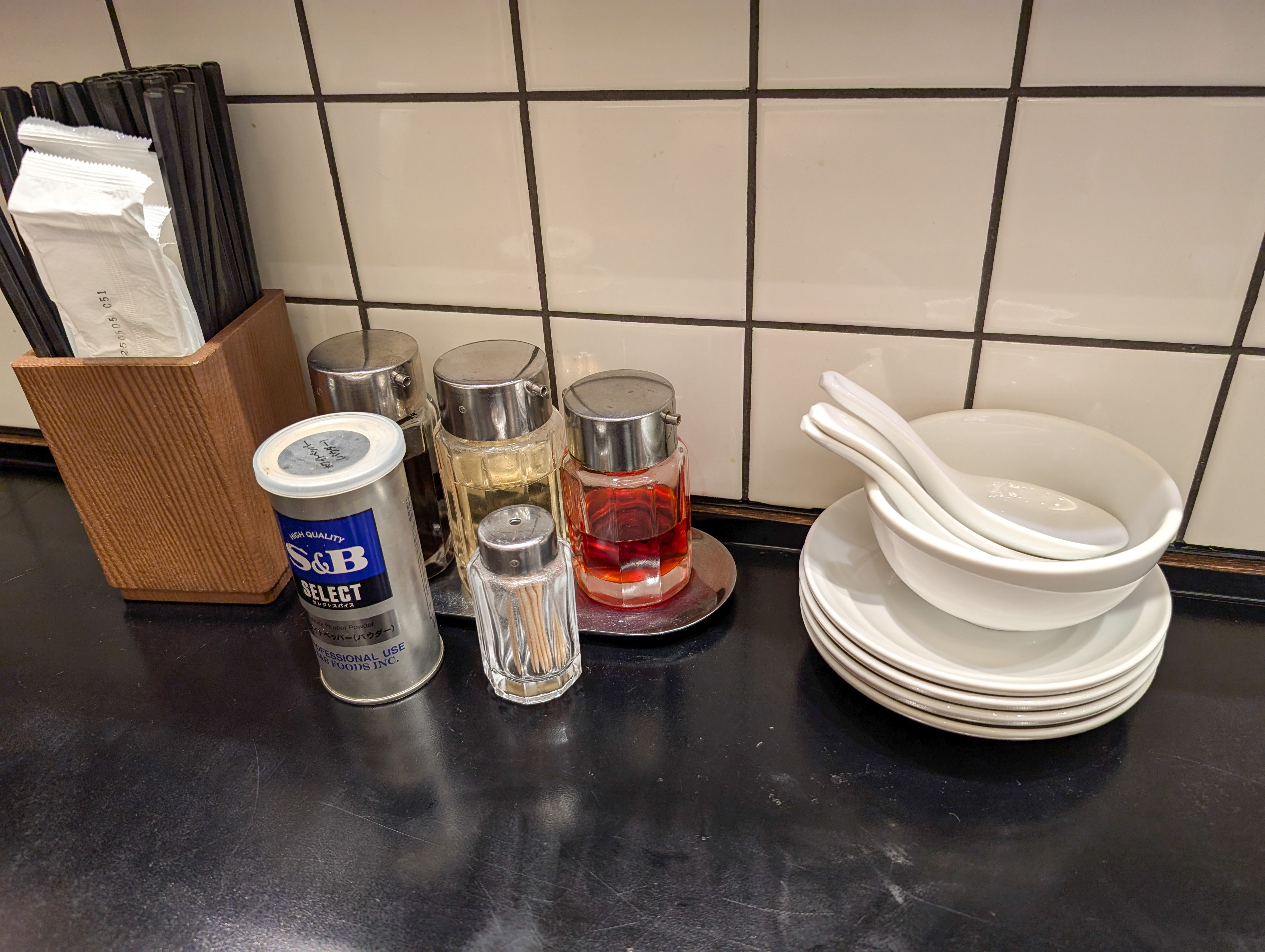 ▲卓上調味料は意外とシンプル。味が完成しているって証かな。