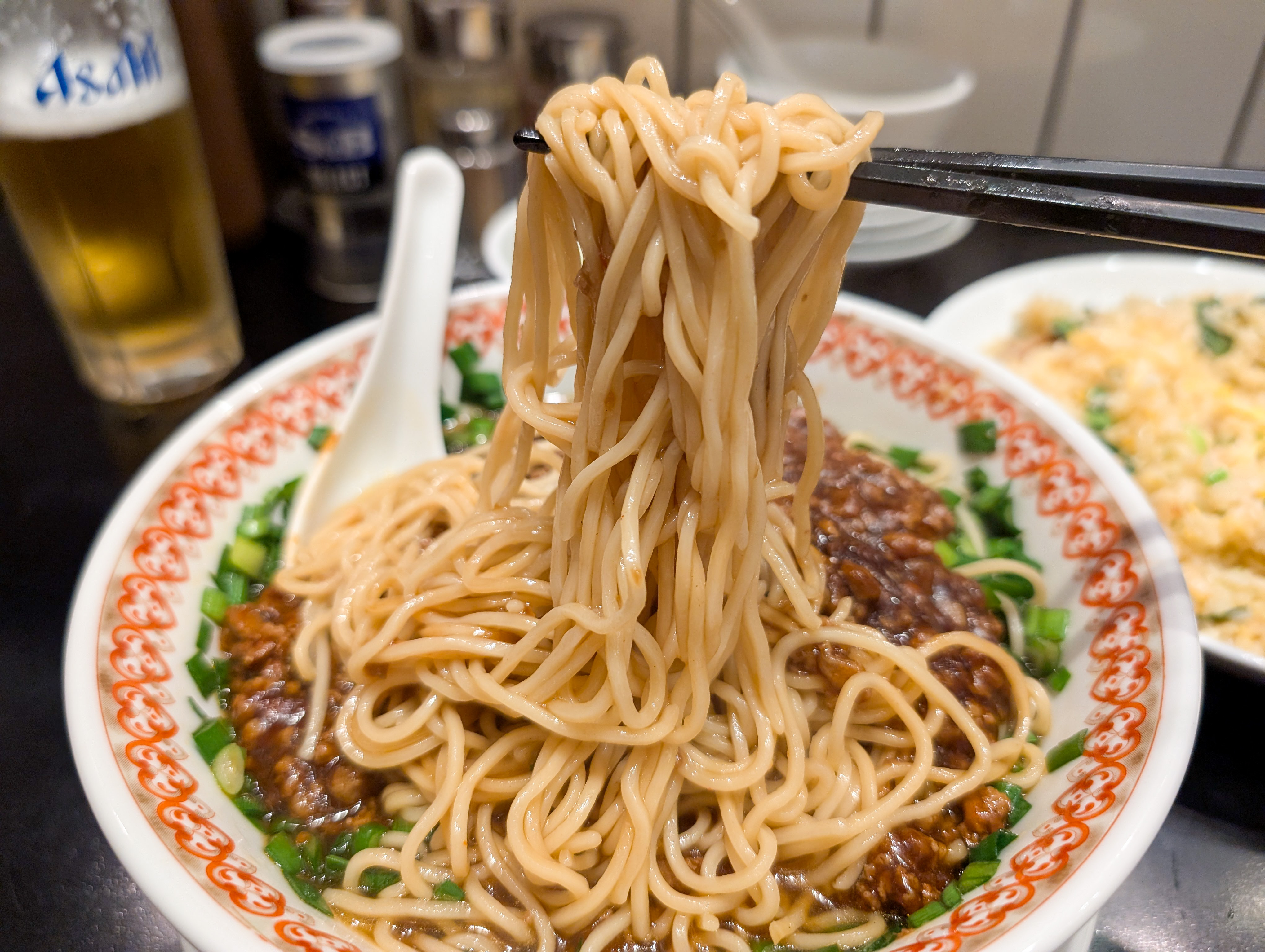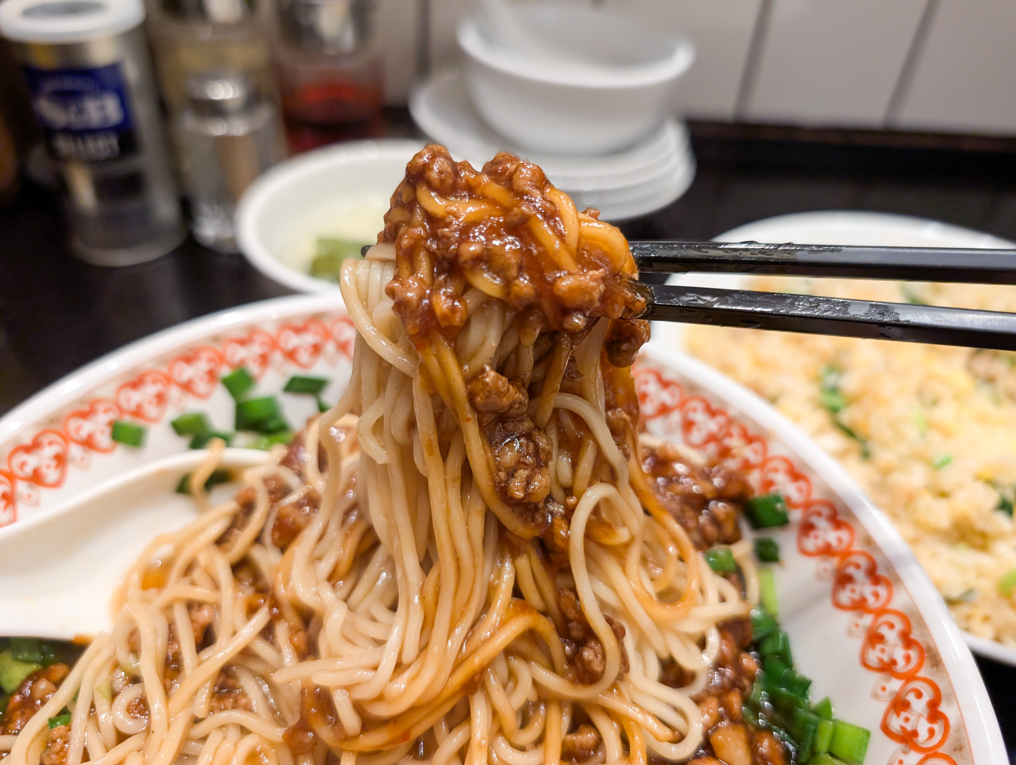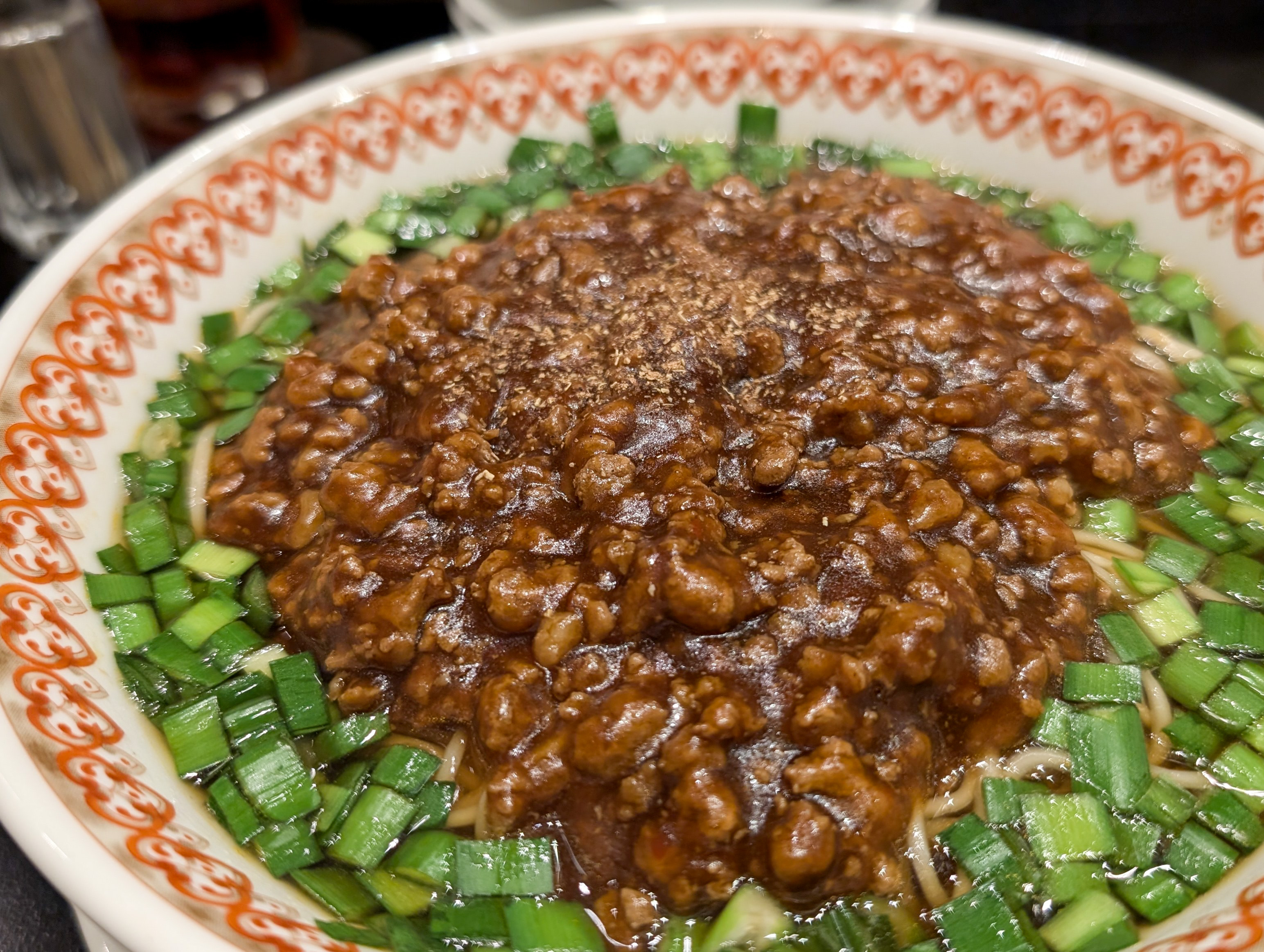 なにこれ!! ほんのり甘めのオイスターチックな醤油味のスープに、加水少なめのしっかりした麺。激熱の肉餡掛けとニラがたっぷり絡み、フカヒレの姿煮のような高級な味がする。中華料理じゃなく、中国料理の味がする! いいの?サンダル履きで来た私が食べても? うっまぁぁぁぁぁああ───い!!!