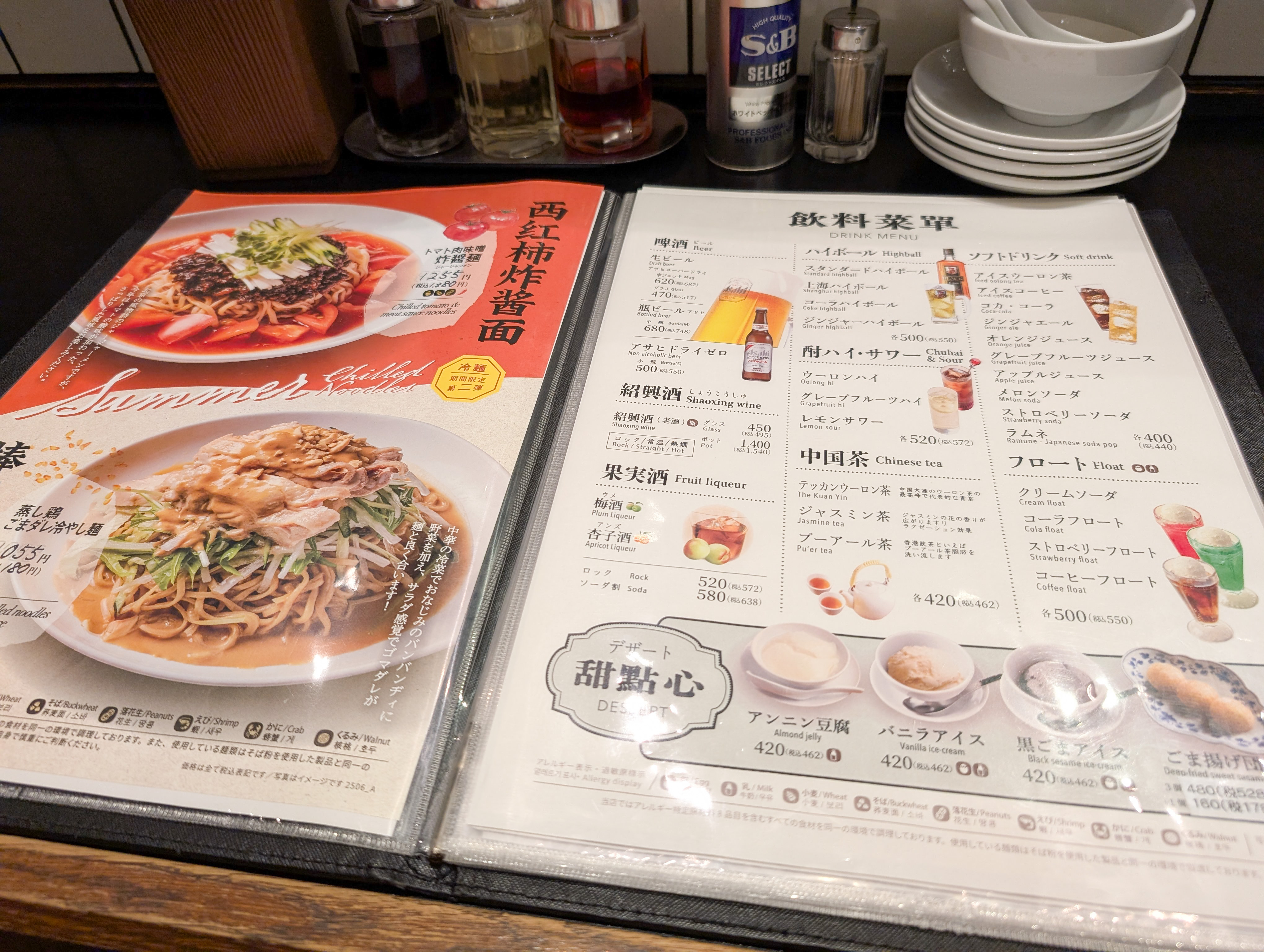 セーフ、概ね1500円前後。点心もあるし、ランチメニューもある。昼飯ヨシ、おやつヨシ、晩飯ヨシってね。決して安いとは思わないが、ぶっ飛んで高いというわけでもないかな。(メニュー全ページの写真撮ったので最下部に貼っておきます)