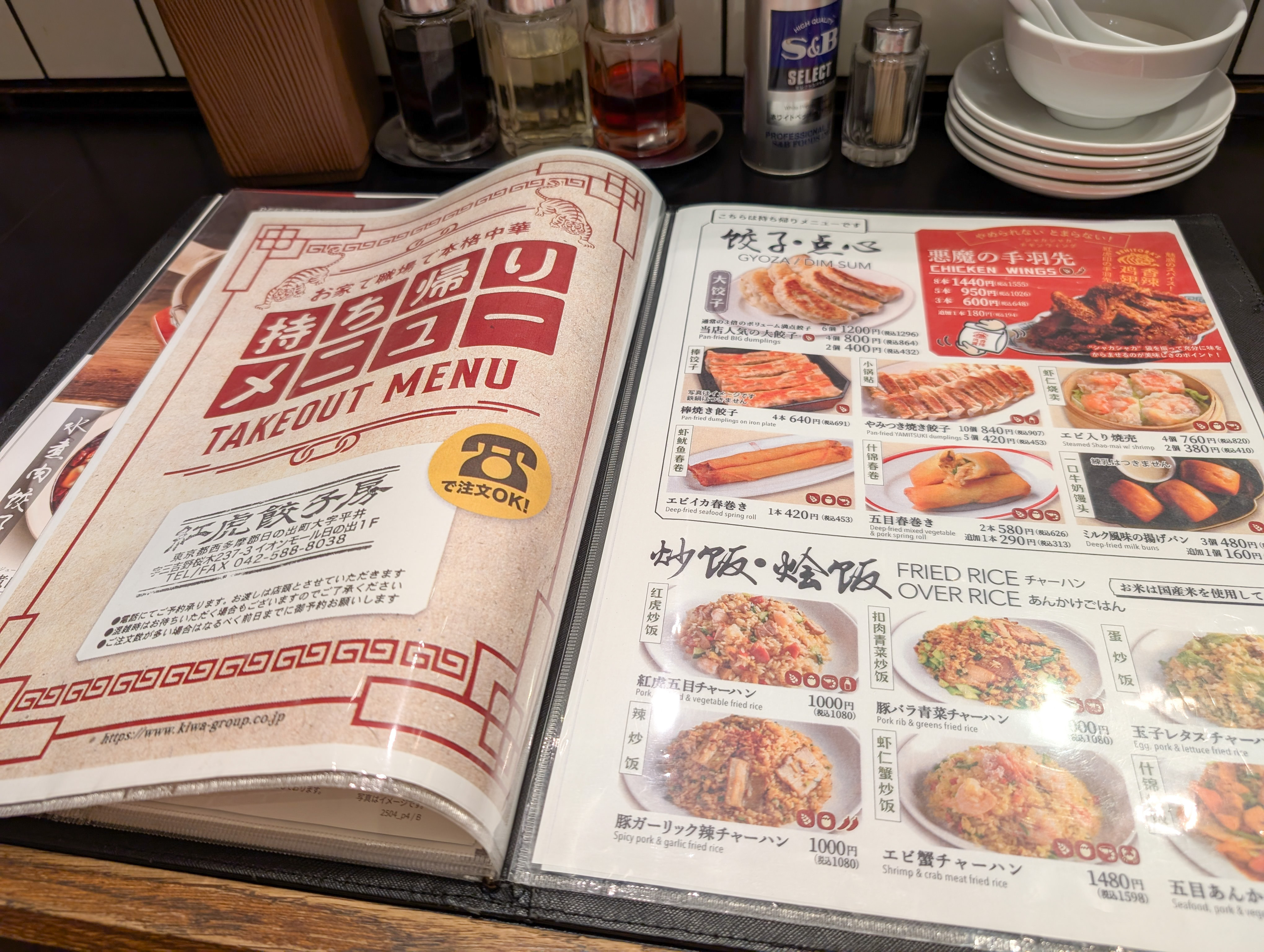 でも幸いなことに、「紅虎餃子房」は5~6割の客入りだった。少しお高いイメージがあるからなのか、中華料理のこってり感が夏場に敬遠されているのか? 昼に向けて後客もそれなりに入っては来るが、回転がはやいので外で待っている客はいなかったように見受けられる。もしかして穴場ですか!?