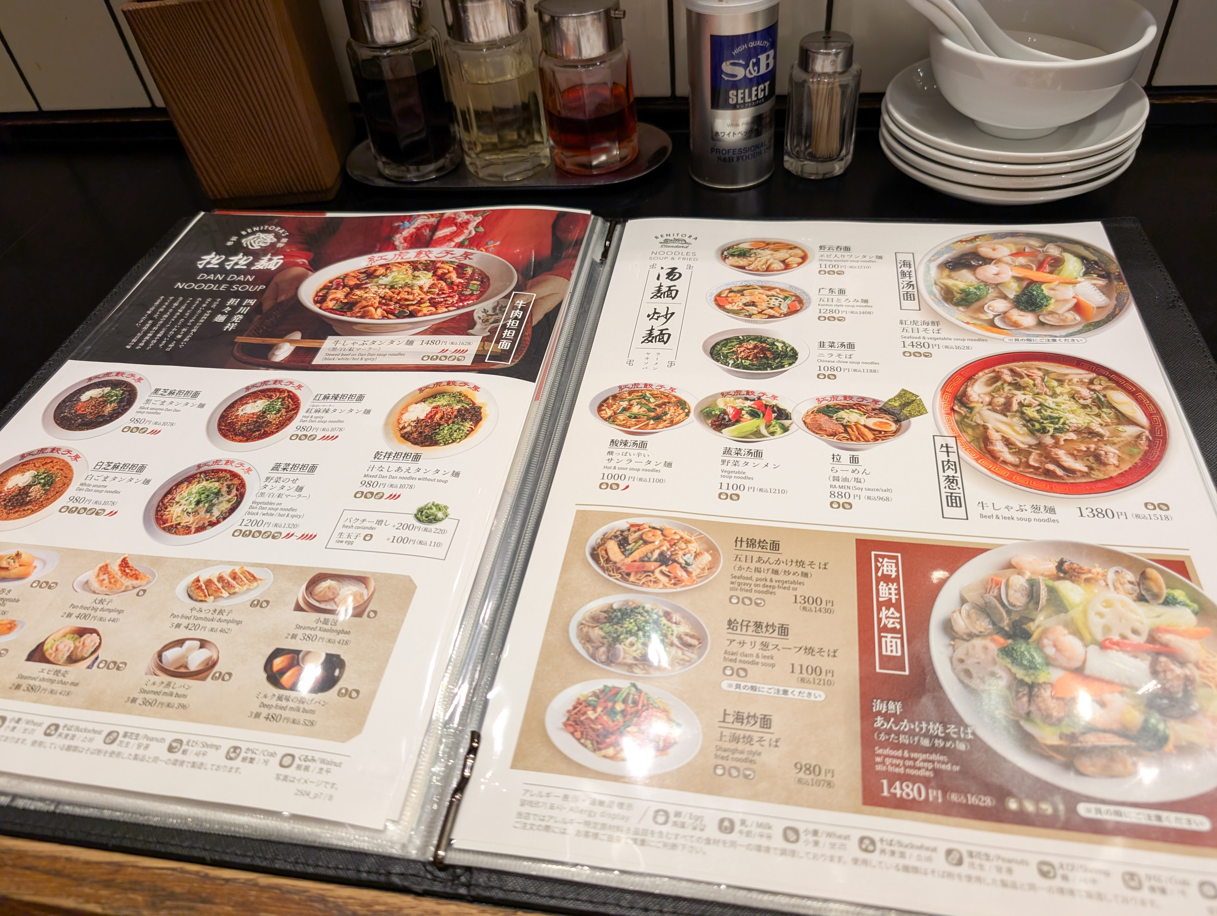 先ずは「韮菜汤面(ニラそば)」から。トッピングは、刻んだニラと肉餡掛けのシンプル構成。メニュー写真のニラと肉餡掛けの比率より、実物の方が圧倒的に肉餡掛けが多い逆詐欺事案。もはや韮菜汤面(ニラそば)と言うよりも炸醤麺(ジャージャー麺)に近い。