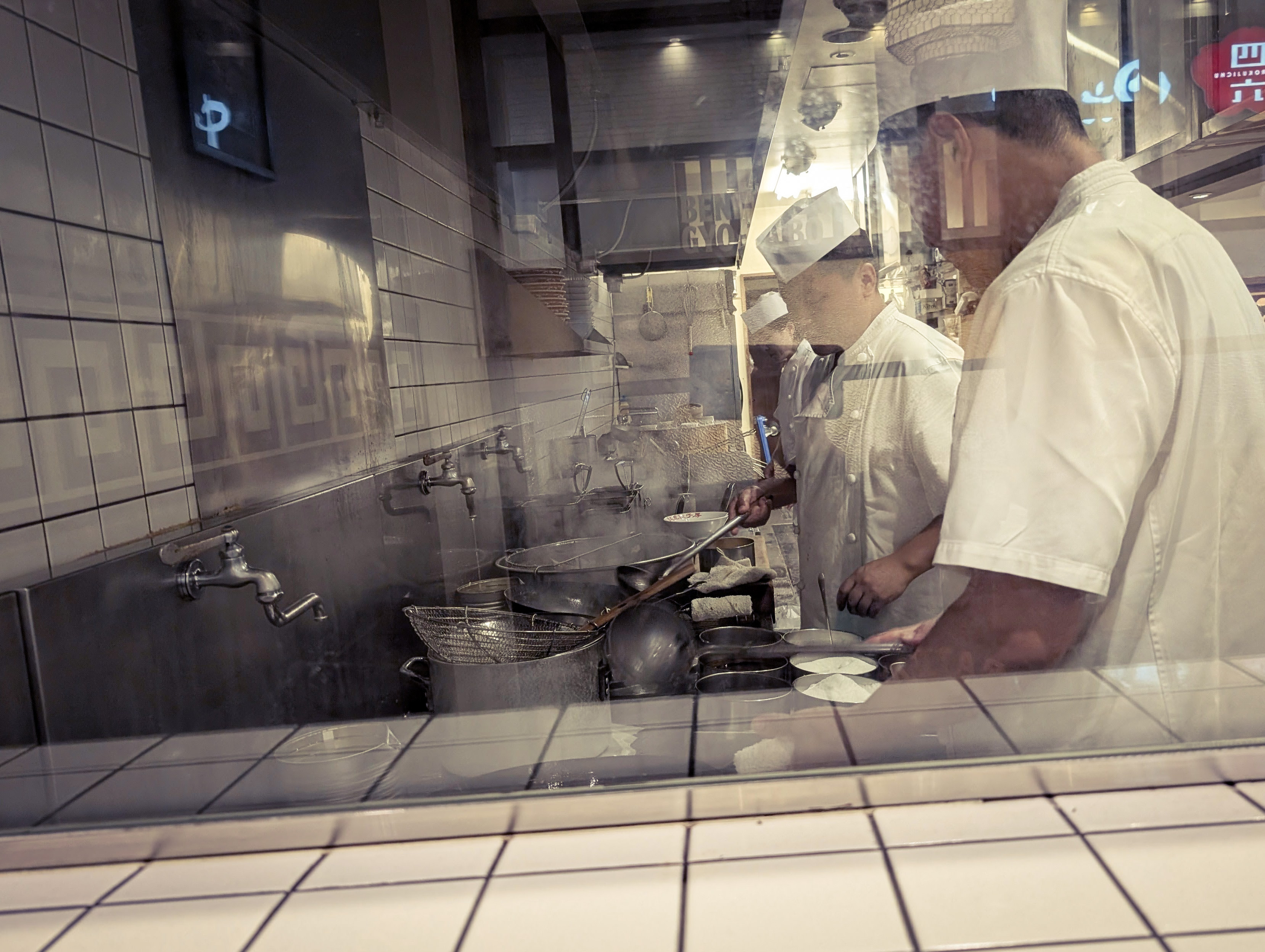 入店したときに「お好きなカウンター席にどうぞ」と促されたので、なんとなくこの席に着いたのだが作っているところが横から丸見えで超楽し~い♪ カッチャンカッチャン適当にやってるように見えるけど、そこは中華一番プロの技!ここは陽泉酒家か!