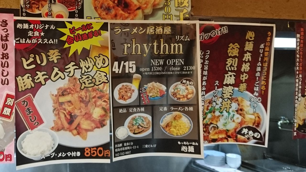 第3日曜日のみ営業しているラーメン居酒屋[rhythm]のビラはトイレのドアに貼ってあったので、月1提供のみにシフトしたってことなのか?