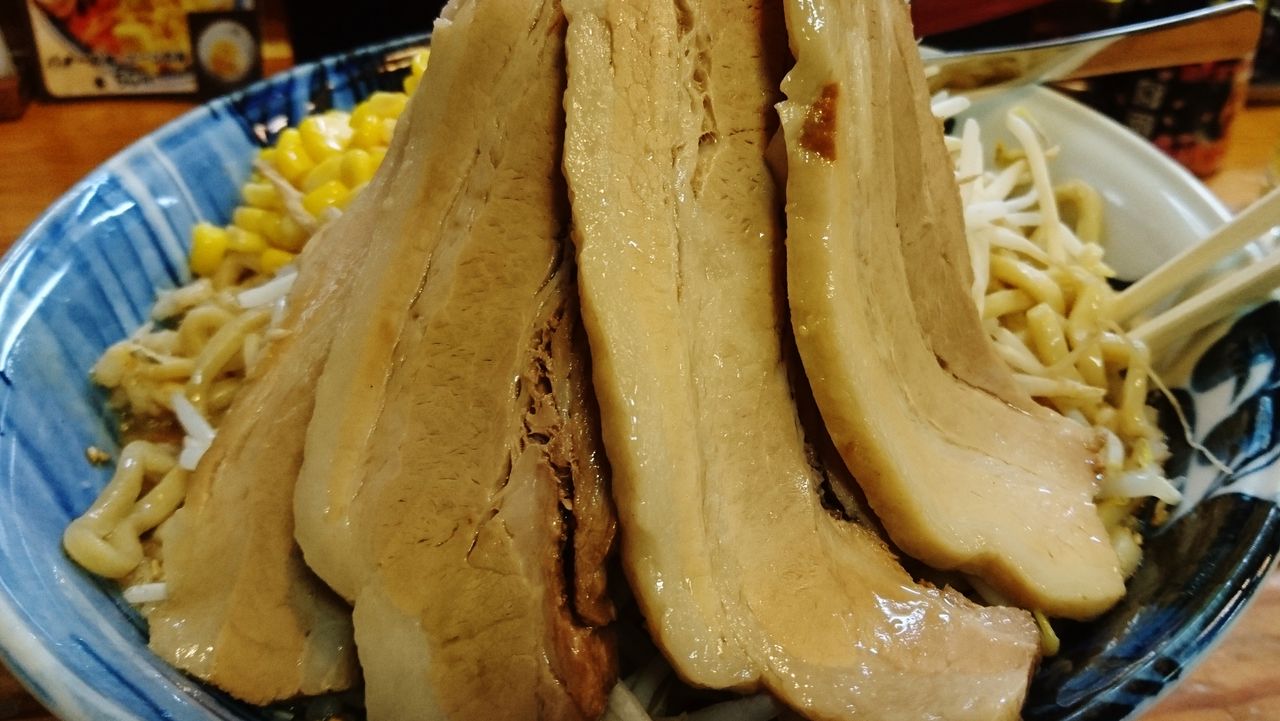 バラチャーシューは、しっとり柔らかく食味が凄くいい。ただ超絶薄味仕立てになったようで、辛いつけ汁に浸けてしまうと食感の違いだけで全部同じ味になっちゃうんですわ💦
