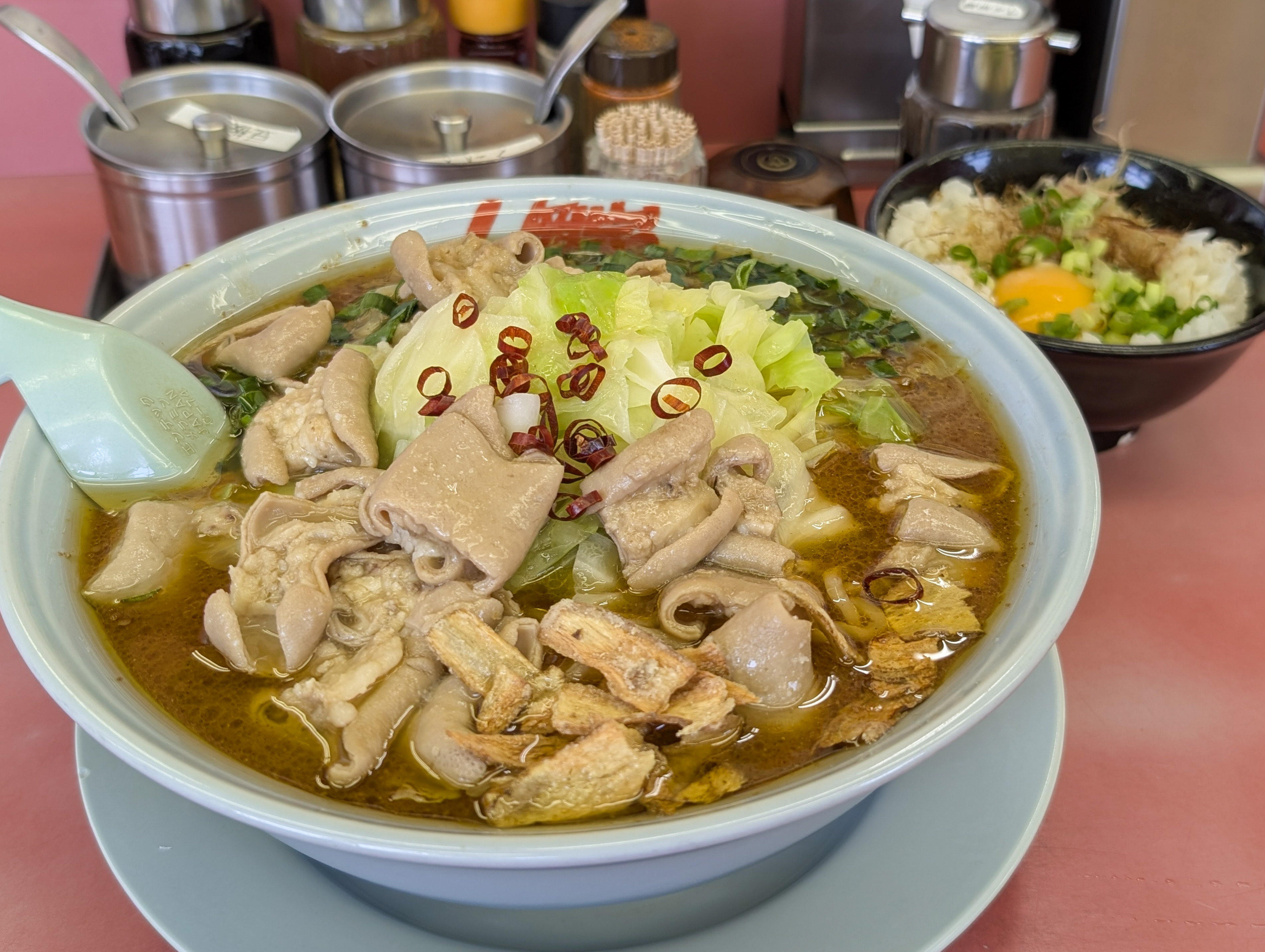 こちらが「白みそとんこつラーメン」。普段の山岡家と変わらないようにも見えるけど、良~く見ればそこはかとなく京都っぽいような…ぽくないような…