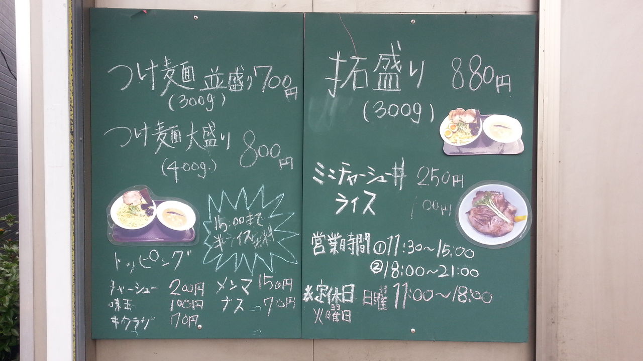 店主の方にお伺いしたところ、1~2週間で提供出来そうだとか。期間限定として考えているわけじゃなく、とりあえずやってみてよかったらレギュラーメニュー増を検討みたいな感じだそうです。「つけ麺」のみの勝負だと厳しいですからね、期待しちゃいます。