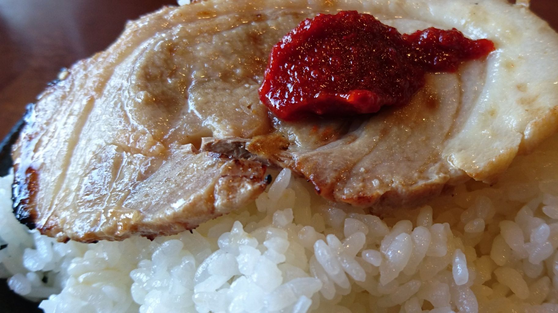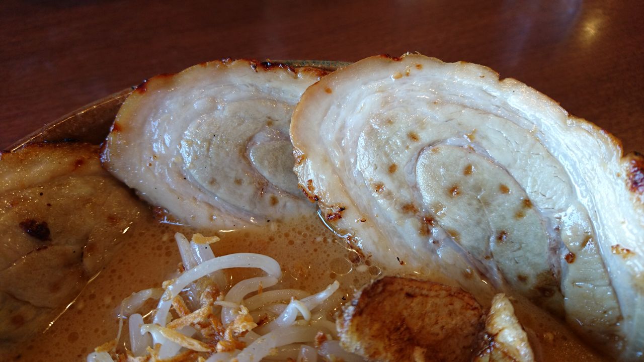 やはり一押しは、味噌漬け炙りチャーシューですね。トロトロホロホロ系とはちょっと違うけど、肉の表面に良い感じの焦げが出来ていて、食べると炭火焼肉でも口に入れたかのよう。味噌漬けってのがいいね。これはマジで旨い。