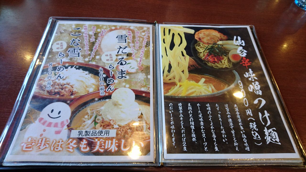 メニューは、変わらないレギュラーメニューの他に、冬期限定ラーメン2種とつけ麺が追加されています。