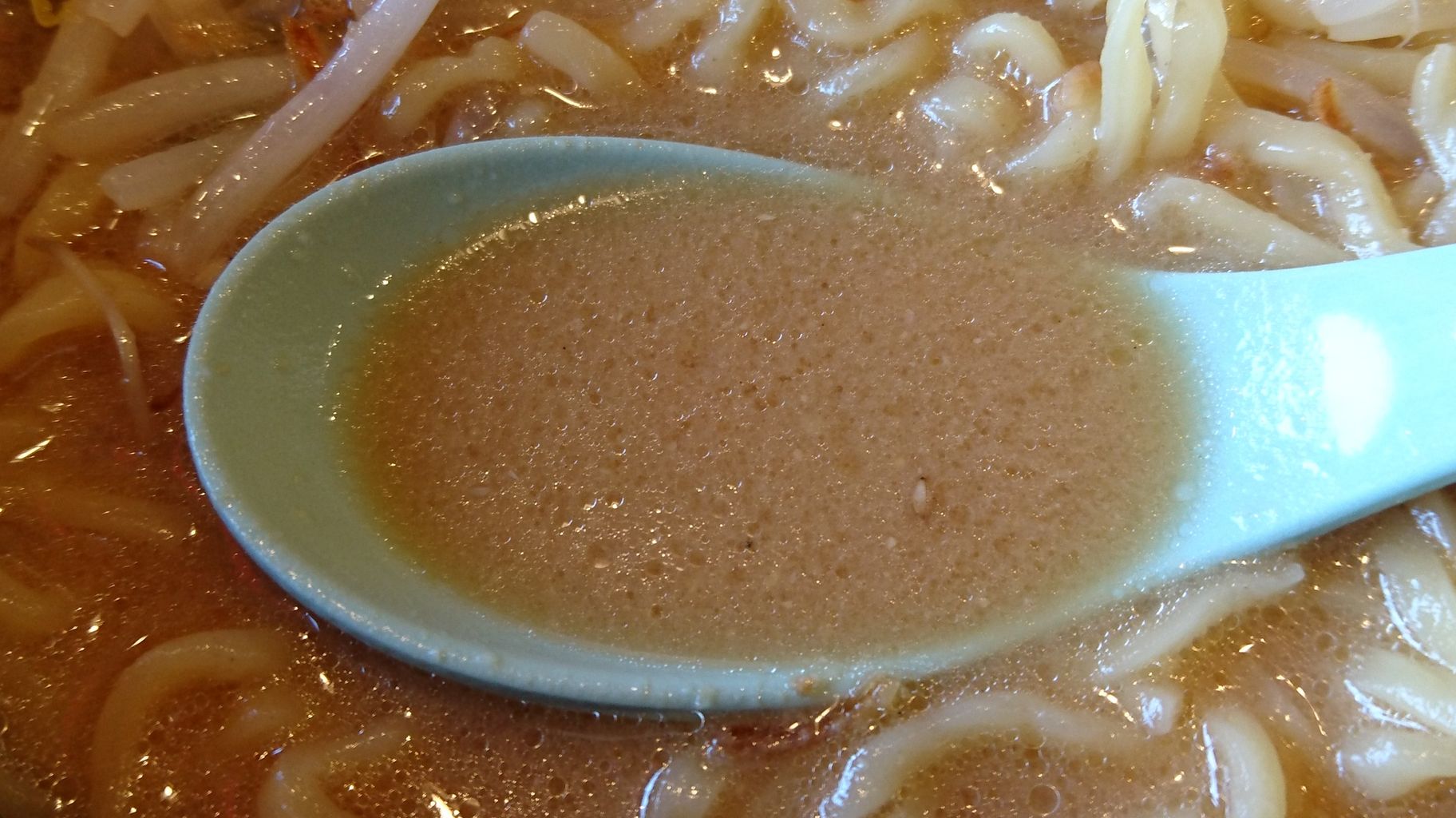 スープは、塩気の強い濃口味噌で、これぞ味噌ラーメンって感じの味。野菜の色的にスープと一緒に煮込んでいないようだけど、しょっぱさの中に柔い甘みがあってなかなか旨いじゃありませんか。