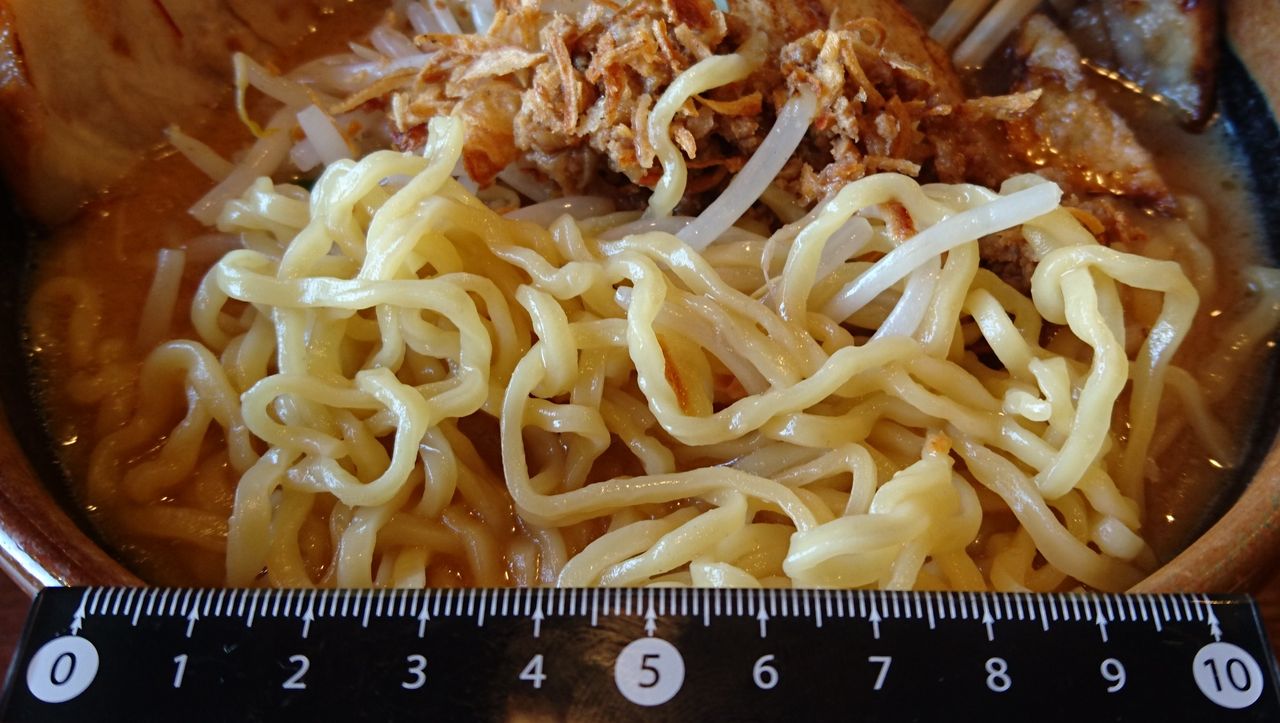 麺は、3×1.5mmくらいで多加水のちぢれタイプ。この濃いスープには、この位の太さがちょうど良い。