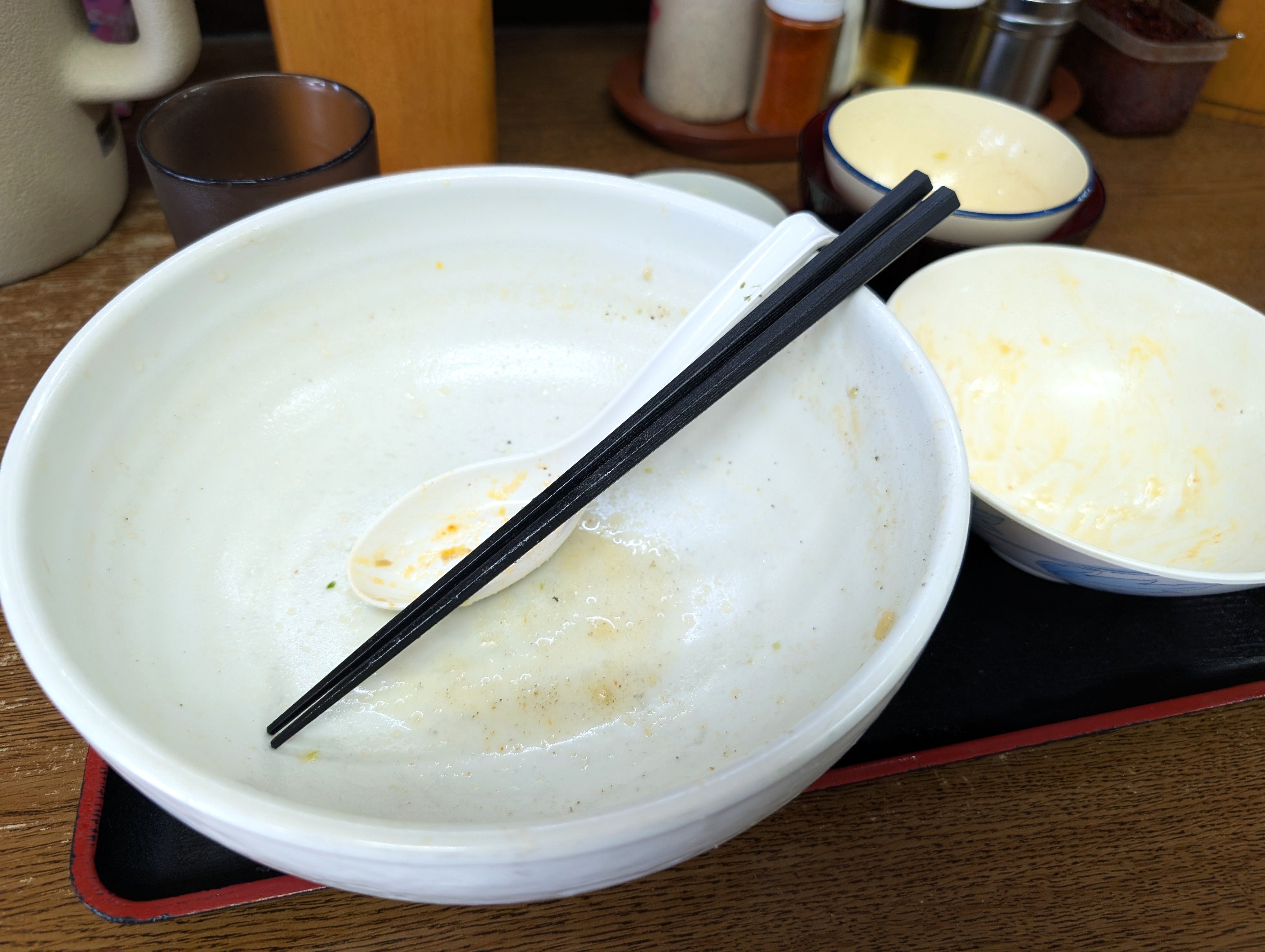 何不自由なく満足げに食べ切ってしまったが、本来は ”冷やし油そば” の予定だったはず……。思うにこれは仕組まれた運命で、『久しぶりに油そばを食べるのだから、まず基本である激熱の油そばを食べていろいろ思い出してから冷やしを食え!』的なお告げだったのかもしれない。なにも信仰はしていないけど そう思うことにした。