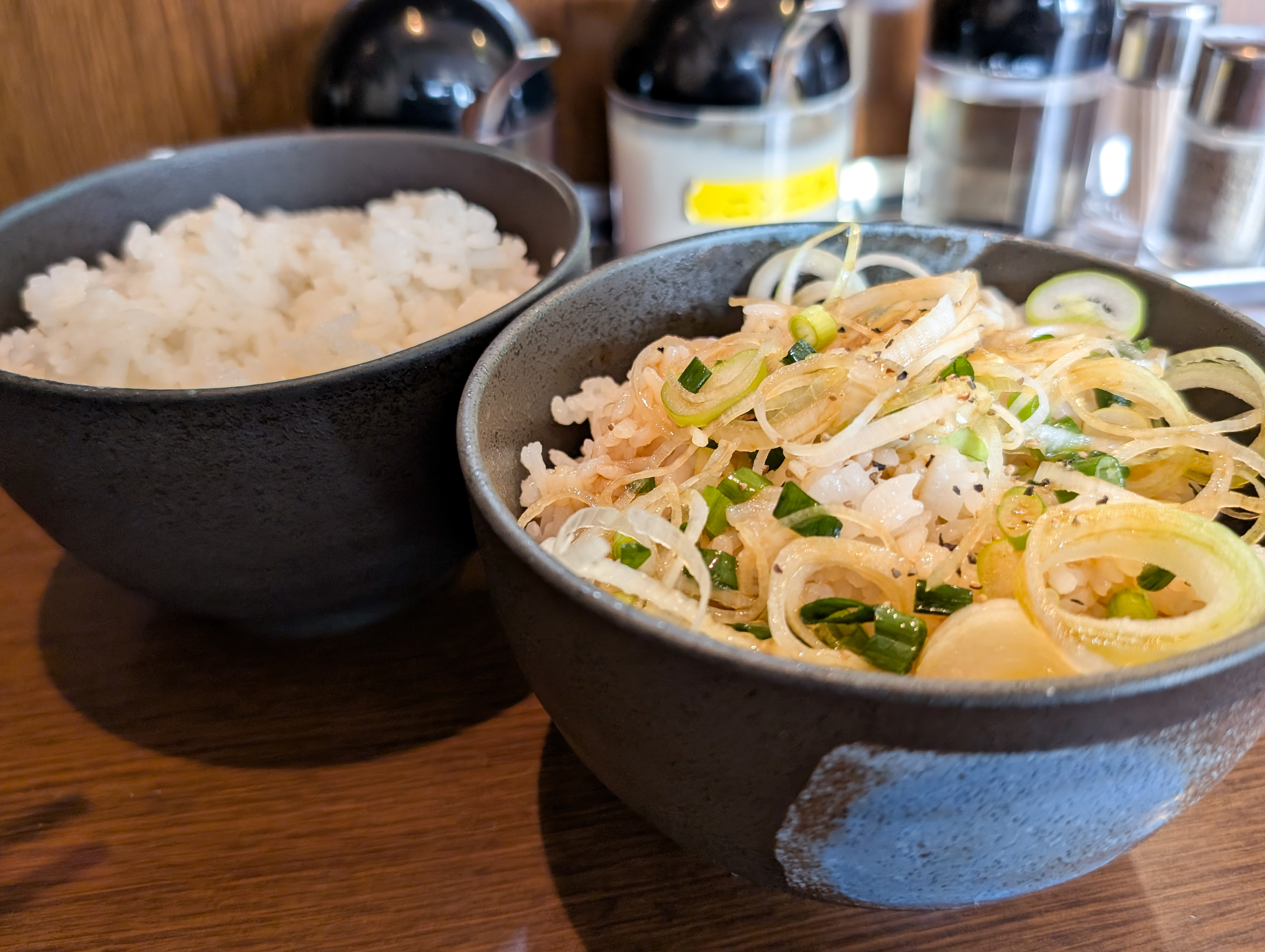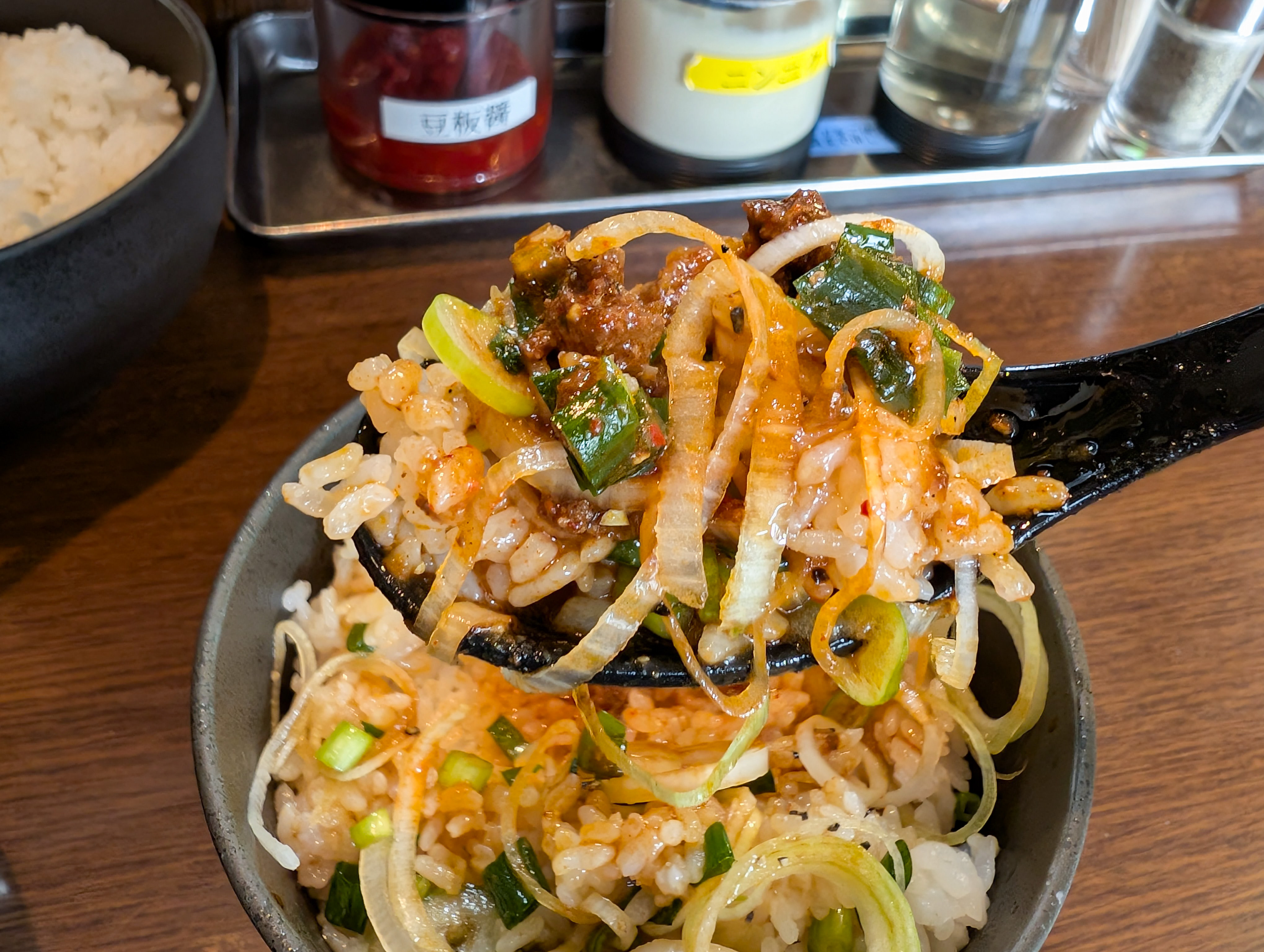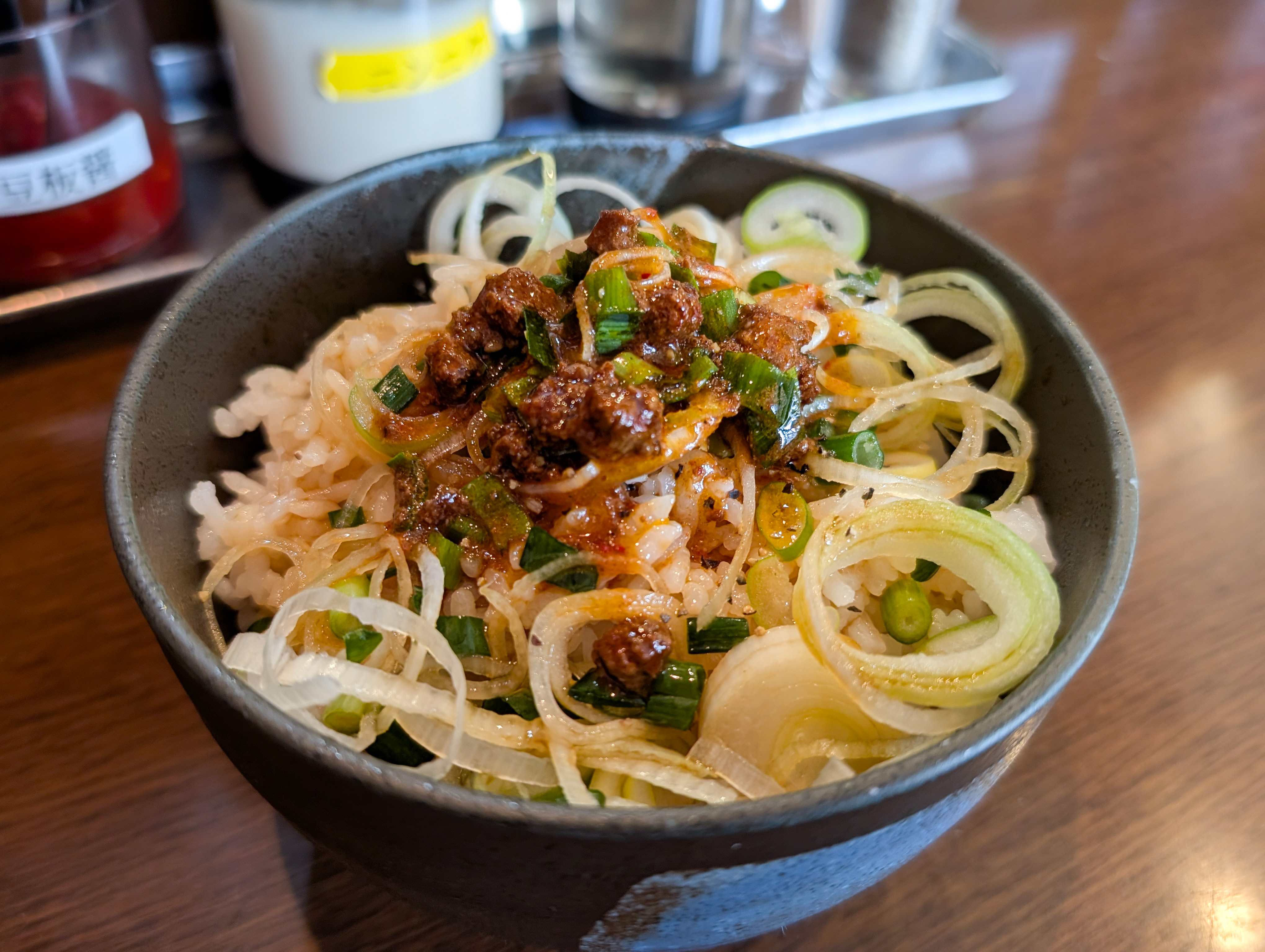 先の焼肉Tみたいにパンチあるラーメンはオカズ化するので、飯ものは絶対にあった方がよい。辛さに自信が無い人にとっては、逃げ場としての救いにもなるだろう。