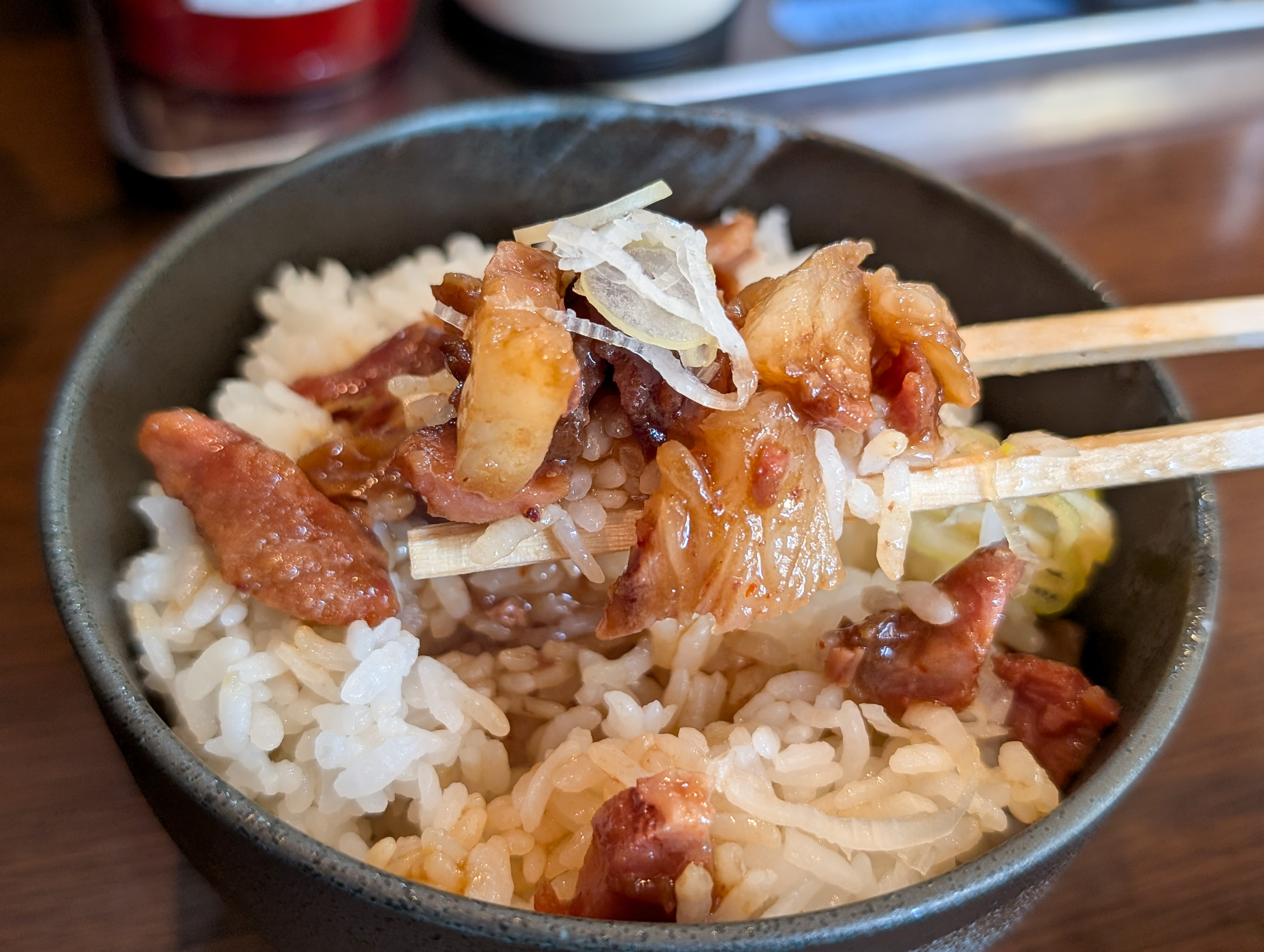 やはりこの量でも辛さが先行してしまう。ただ肉味噌ってのが今回のポイントで、モグモグしてると肉の旨みが広がってネギめしを一段階引き上げてくれる。絶対条件である甘味が弱いので王にこそ届かないが、十分Sクラスの美味しい組み合わせかと。