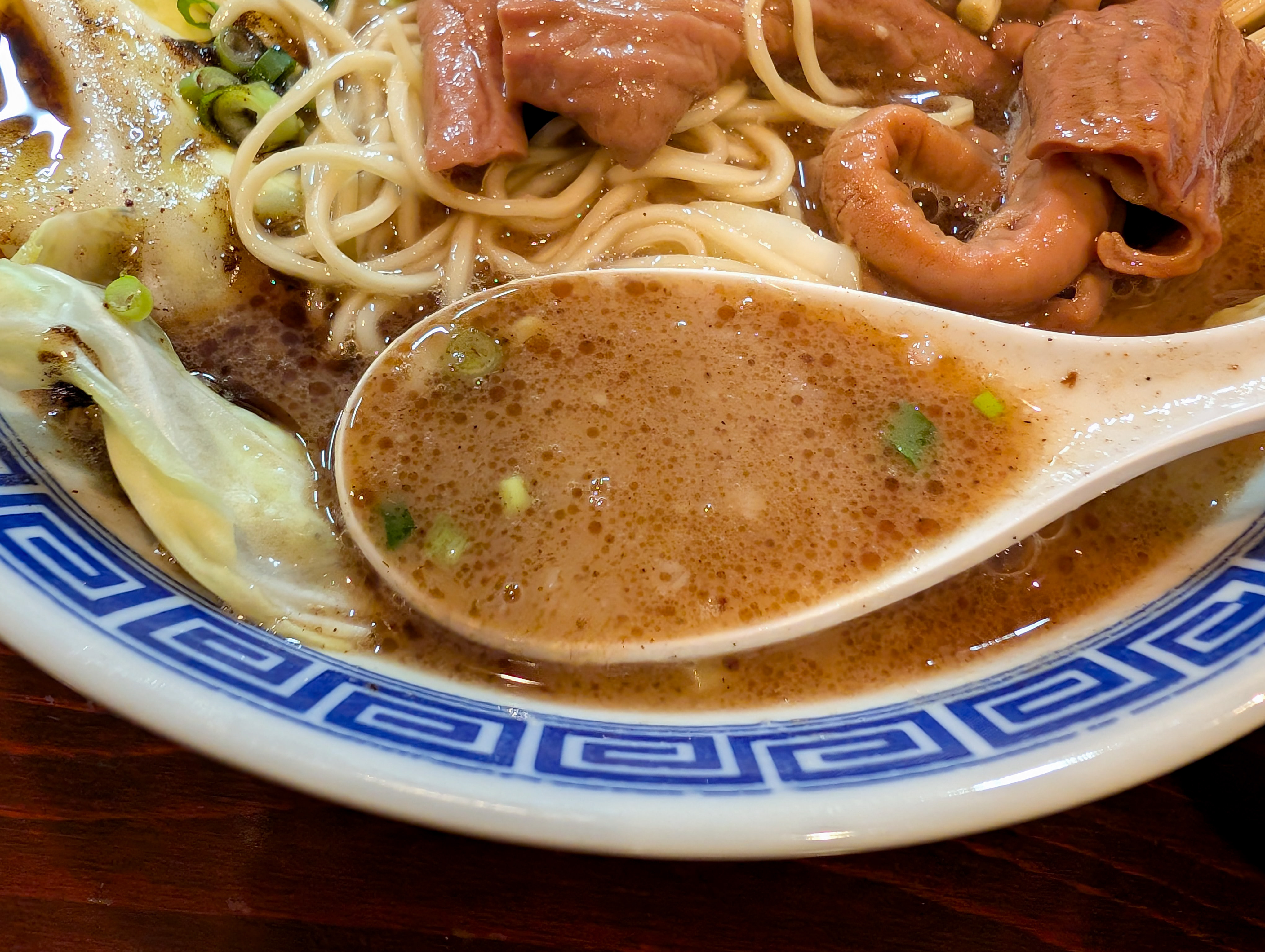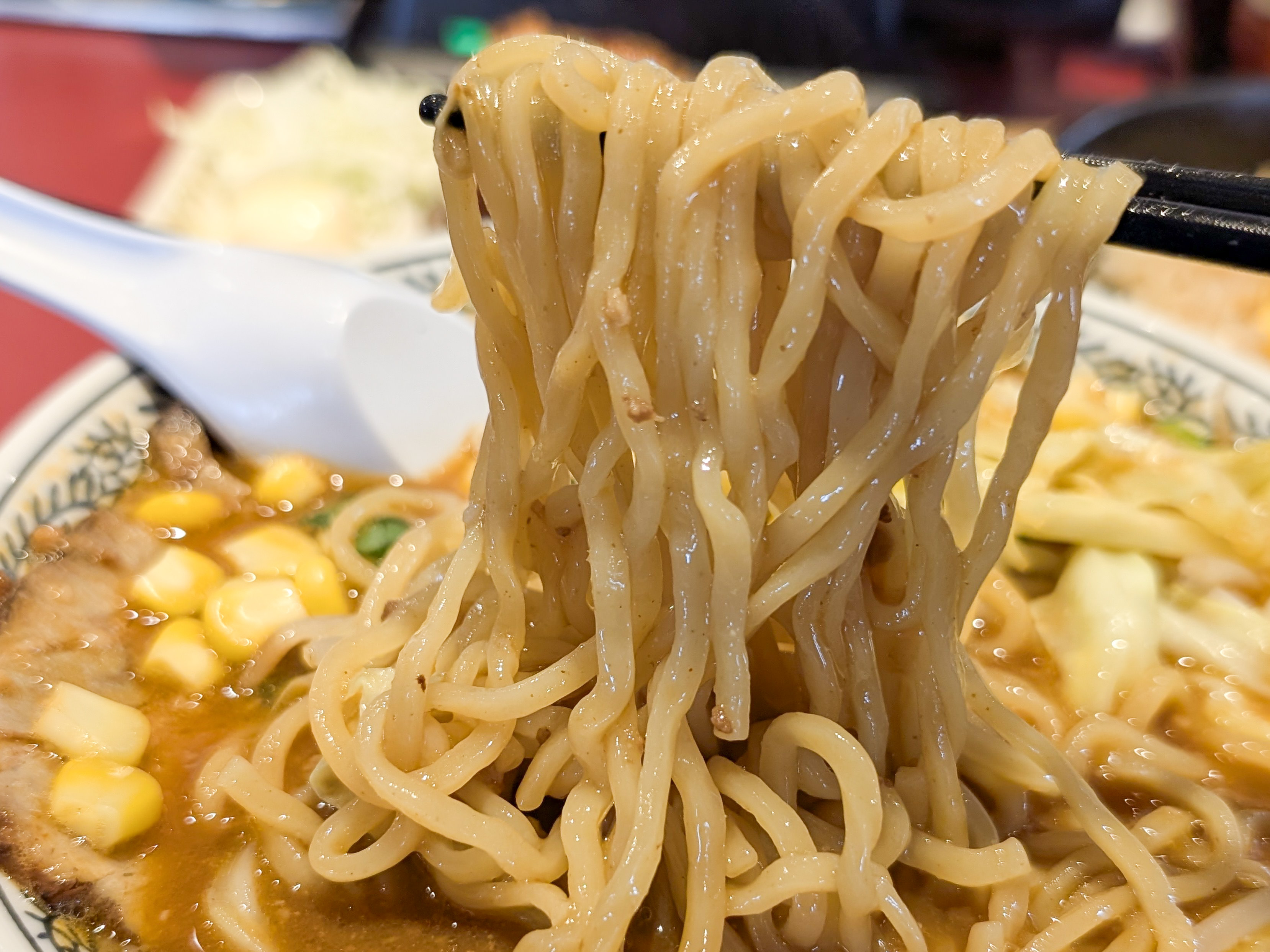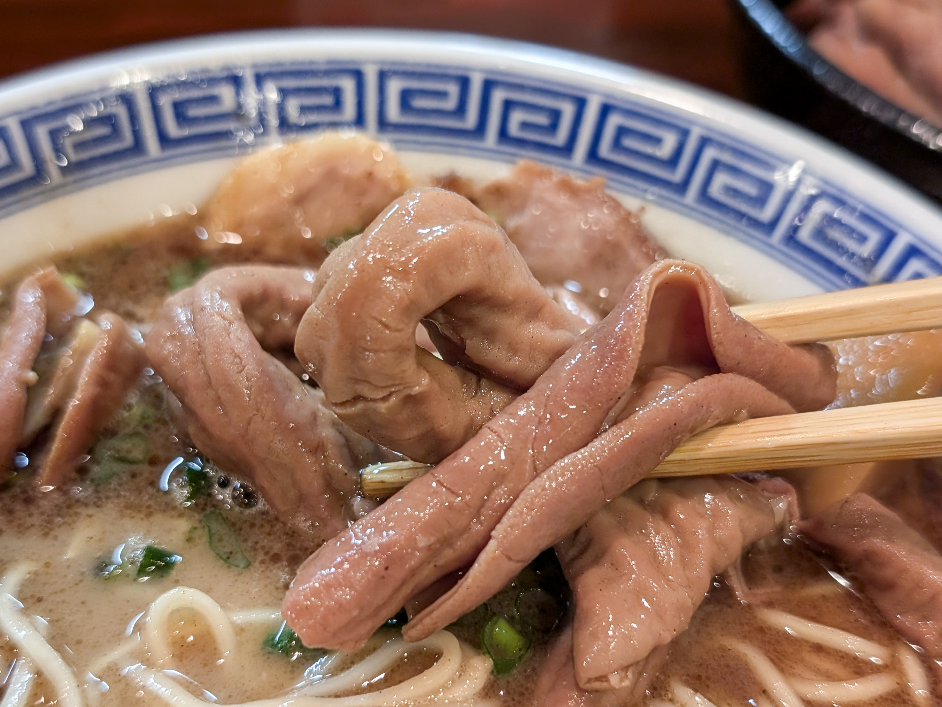 なによりマー油が似合い過ぎている。マー油好きなもんで贔屓目なのかもしれないが、雑味のないぺったりした豚骨スープに、かるいビターな風味とオイリーなアクセントがアドして超~美味い。