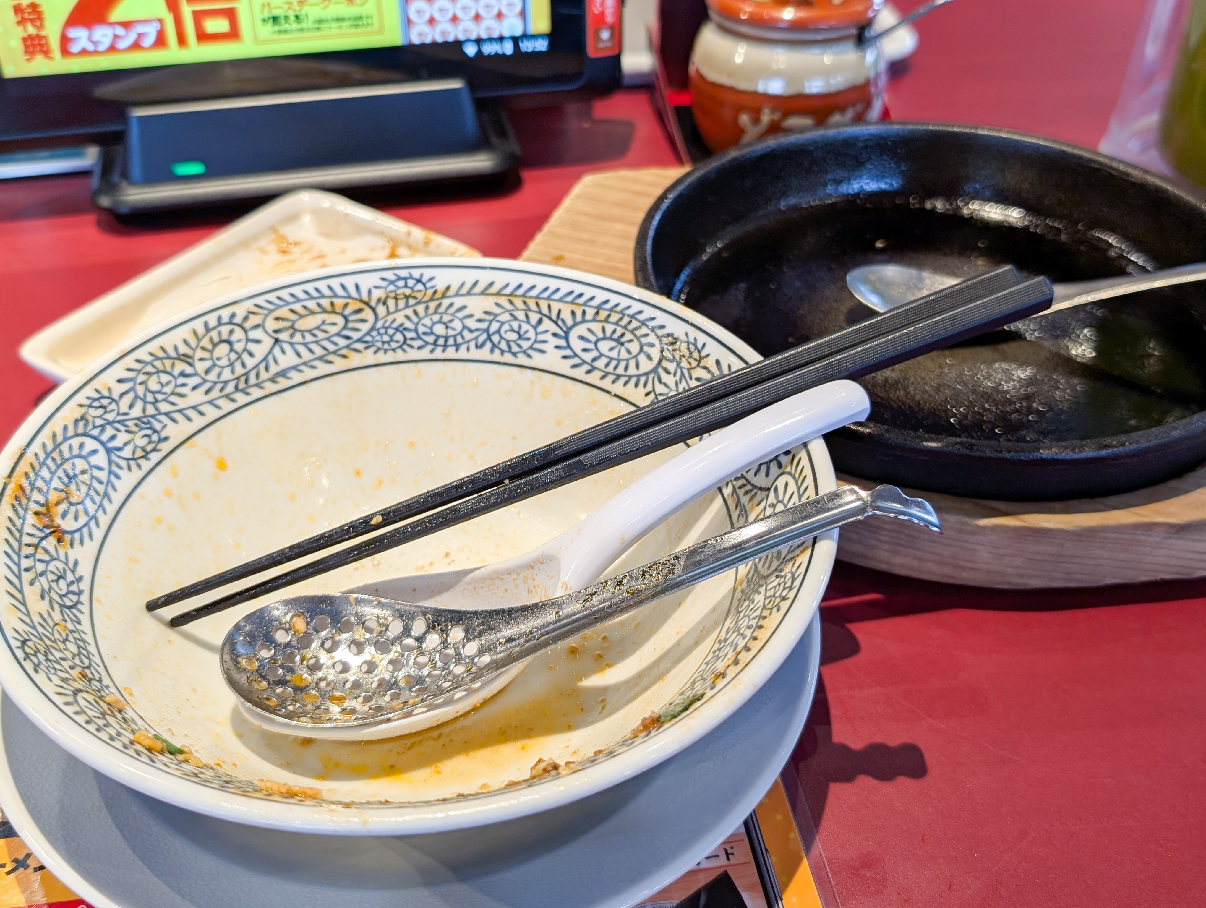 両隣の視線を感じながらポチャンで完走。いろいろ馴染んだ熟成豚骨スープの飯わりが美味すぎた。